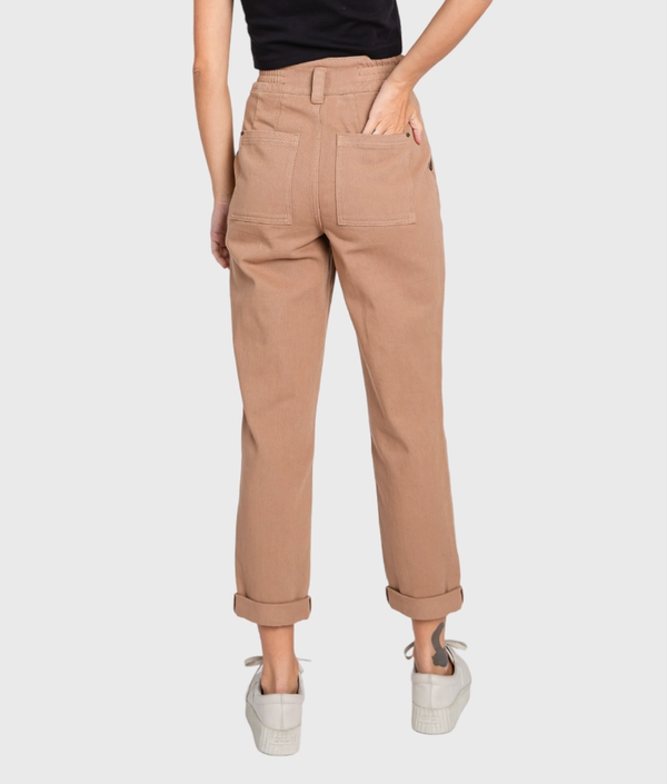 High Rise Paper Bag Mom Jeans w/ Elastic Band)