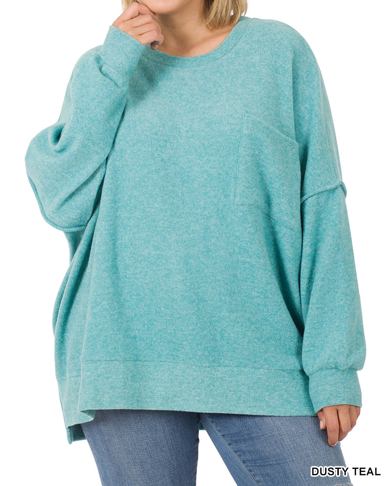 Plus Brushed Melange Drop Shoulder Oversized Sweater